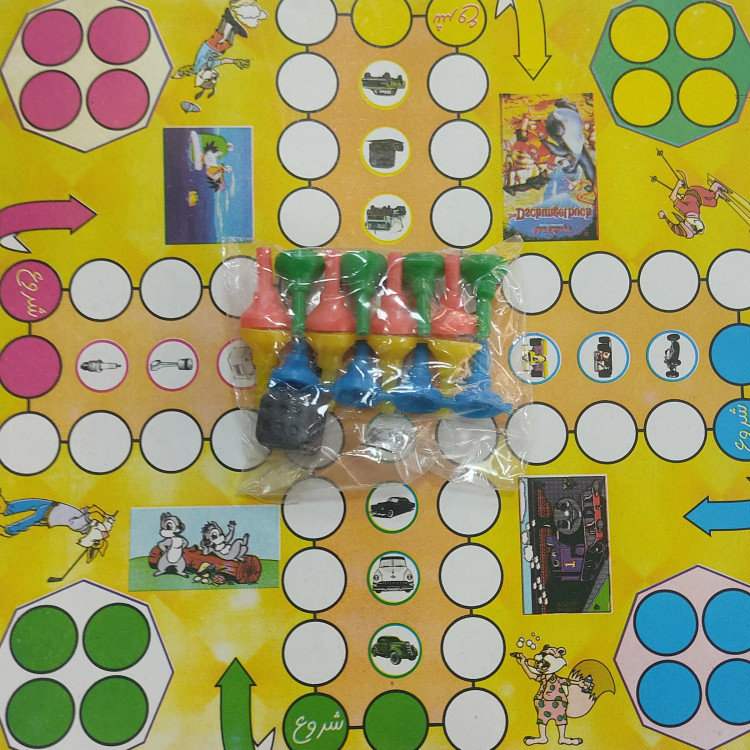 مینچ مقوایی همراه با مارپله و مهره ها و تاس بازی قدیمی و همیشه جدید