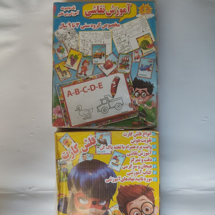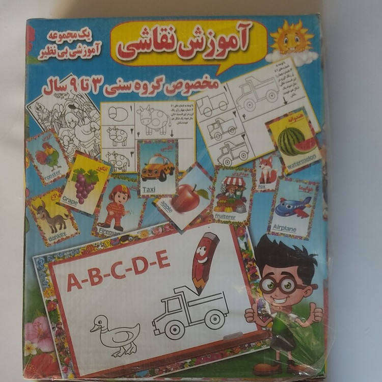 آموزش نقاشی در یک جعبه شامل فلش کارت تخته وایت برد پاکن وایت برد و کتاب آموزشی