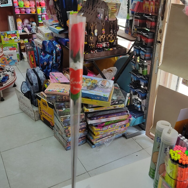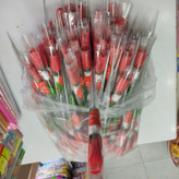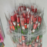شاخه گل قرمز طلقی همراه با عروسک یونولیتی با ارتفاع 35 سانت