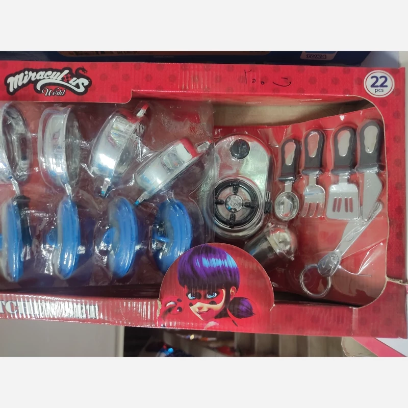 اسباب بازی ست آشپزخانه دختر کفش دوزکی با تمام لوازم آشپزخانه کودکانه طرح و رنگ استیل